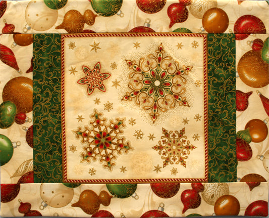 Christmas Fabric Placemat - Red Green & Gold (Set of 4)